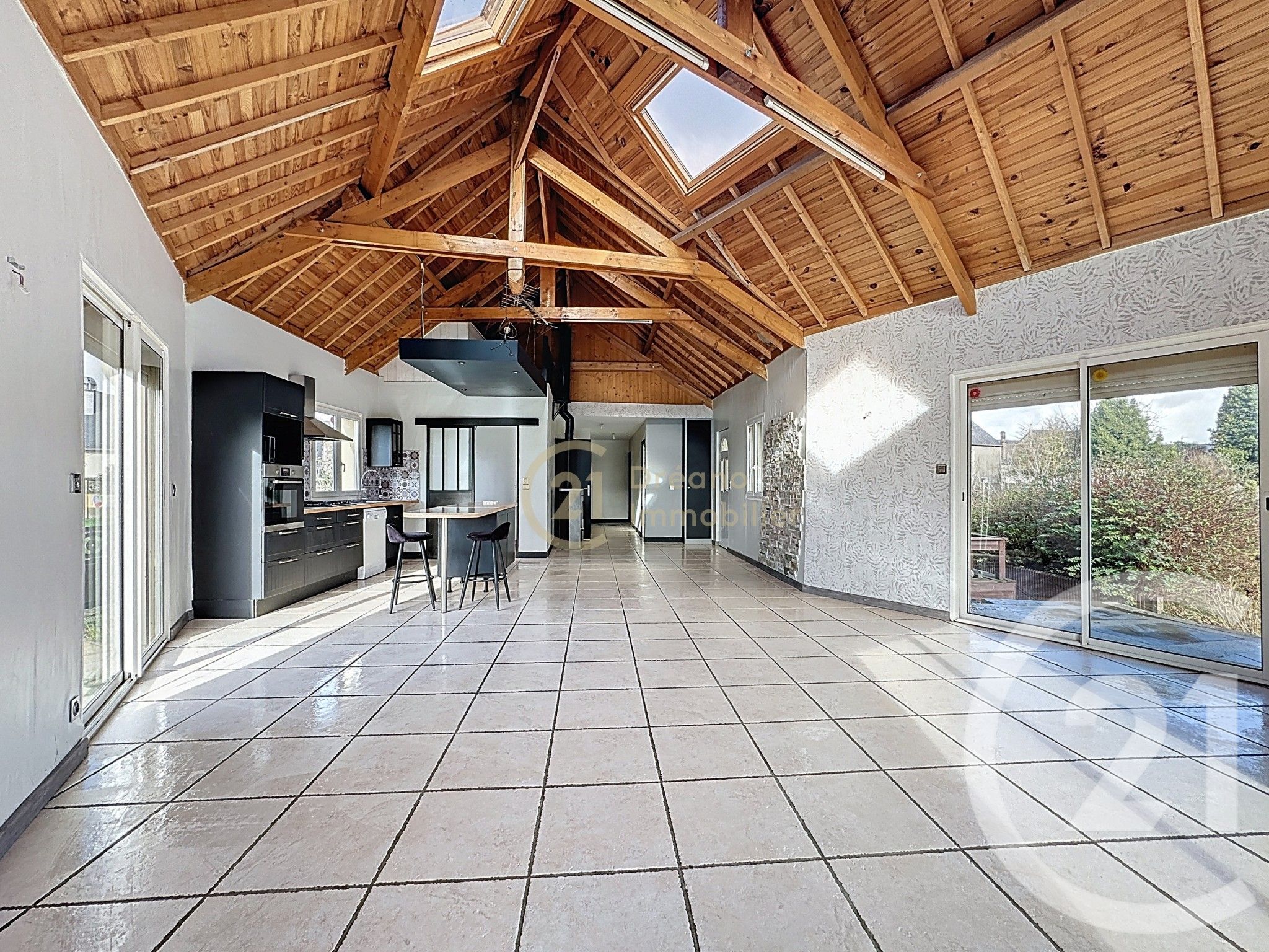 - Double vitrage, plain pied, poutres